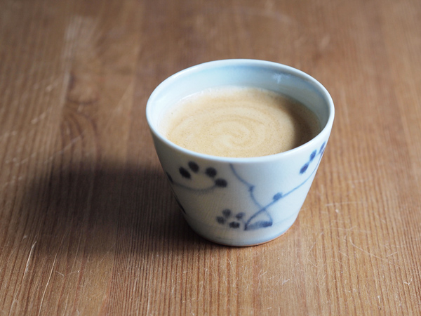 稲村さんの蔓(つる)文そば猪口にルンゴコーヒー