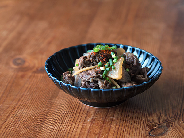 コンビーフのポテトサラダに牛すじ煮込みと大衆酒場さながら完全に酒のアテですが、阿部さんのうつわ効果で多少はよく見えるでしょうか。